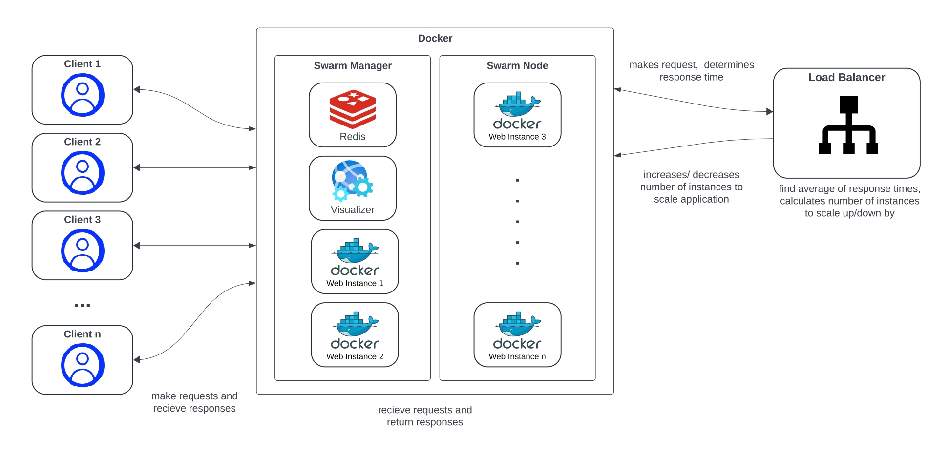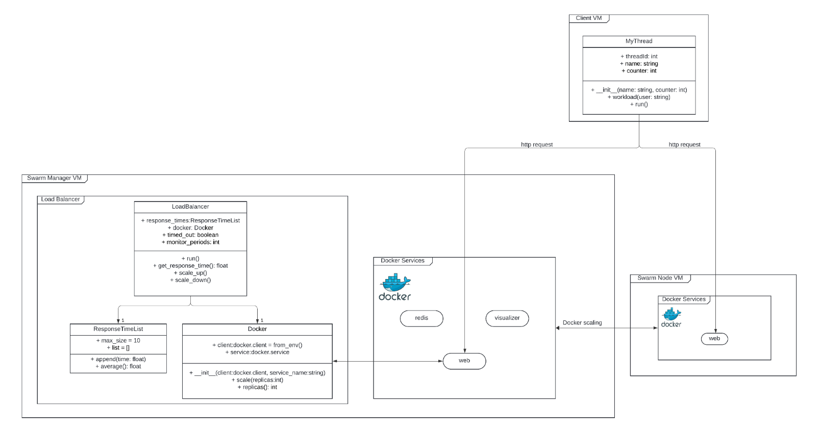 The main reason for choosing Python was due to its Docker Engine API support. The Docker SDK for Python library was used to interact with the Docker engine to scale the web service.